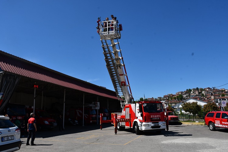 İtfaiye Müdür Vekili Mehmet Ali Demirkol, özel çocuklara itfaiye görevleri ve çalışmaları hakkında bilgiler verdi. Temsili ihbar değerlendirildi, yeni itfaiyeciler olay yerine itfaiye aracıyla hareket etti. Merdivenli aracın sepetine bindirilen engelsiz itfaiyecilere kurtarma çalışmaları hakkında pratik yaptırıldı.