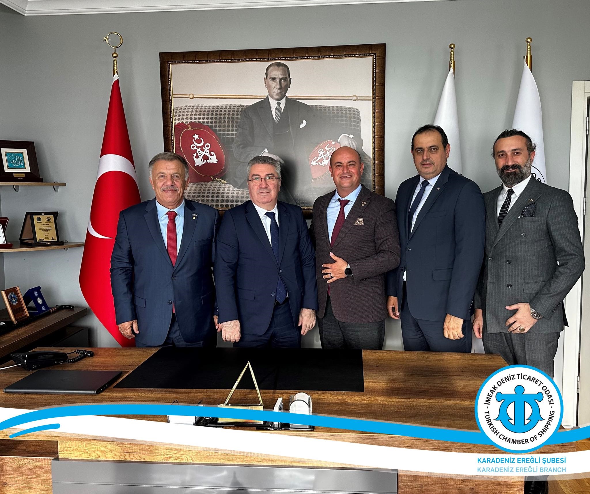 Ereğli Demir ve Çelik Fabrikaları(ERDEMİR) Genel Müdürü Niyazi Aşkın Peker, İMEAK Kdz. Ereğli Deniz Ticaret Odası(DTO) Yönetim Kurulu Başkanı Oğuz Ünlüer ve yönetimine nezaket ziyareti gerçekleştirdi.