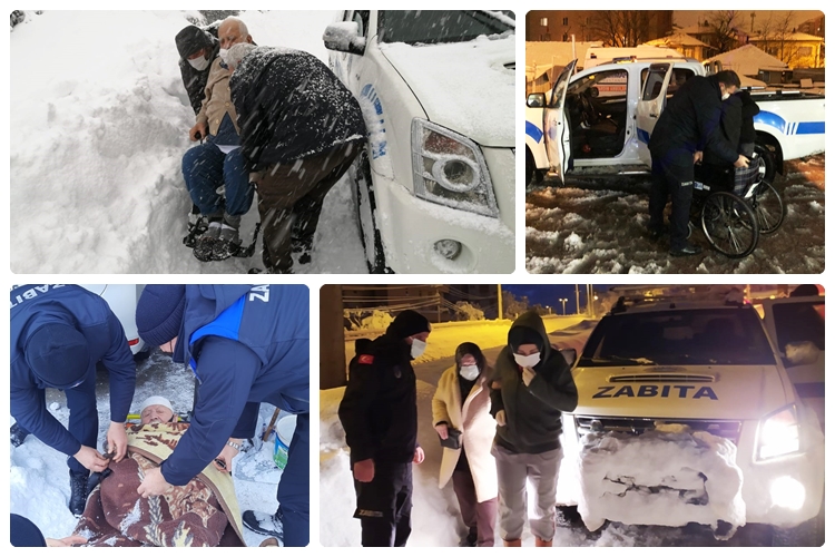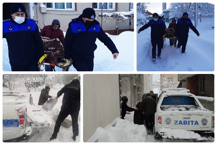 Zonguldak’ın Ereğli ilçesi Belediyesi, kenti etkisi altına alan yoğun kar yağışı nedeniyle evlerinden çıkamayan acil hastaların yardımına koştu.