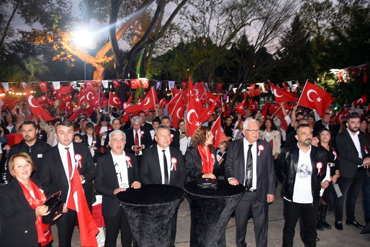 Hafta boyunca, Atatürk ve Cumhuriyet temalı etkinlikler, sergi açılışları gerçekleştirdik. Esnaflarımıza, vatandaşlarımıza Türk bayrakları dağıttık. Sokaklarımızı, caddelerimizi bayraklar ile donattık. Sizlerin de katkısıyla her yer kırmızı beyaz oldu. Hepinize teşekkür ediyorum, sağ olun, var olun.  Pazar akşamı yine Cumhuriyet yürüyüşümüz olacak, ellerimizde bayraklar, yüreğimizde Atamız, yeri göğü birlikte inleteceğiz. Ardından hem yarın, hem de pazartesi akşamı Cumhuriyet konserlerimiz olacak.
