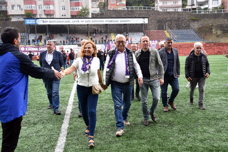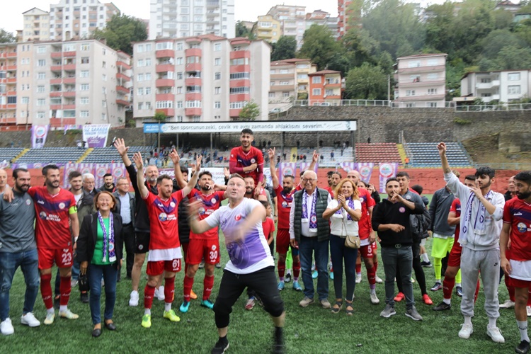 Başkan Posbıyık, eşi Neriman Posbıyık, Kulüp 2. Başkanı Halil Bozkuş ve yönetim kurulu üyeleri sahaya inerek futbolcuları kutladı.