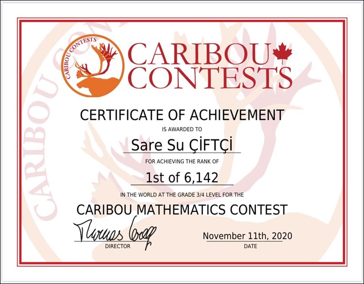 Kanada merkezli olarak dünya çapında online şekilde düzenlenen Caribou Contest Matematik yarışmasının 1. aşamasında üçüncü sınıf öğrencisi Berkay Balcı dünya birinciliği; 2. aşamasında üçüncü sınıf öğrencisi Berkay Balcı ve dördüncü sınıf öğrencisi Sare Su Çiftçi dünya birinciliğine imza attı. Yarışmanın 3. aşamasında üçüncü sınıf öğrencisi Berkay Balcı ve dördüncü sınıf öğrencisi Uras Şen dünya birinciliği; 4. aşamasında üçüncü sınıf öğrencisi Berkay Balcı dünya birinciliğini paylaştı.