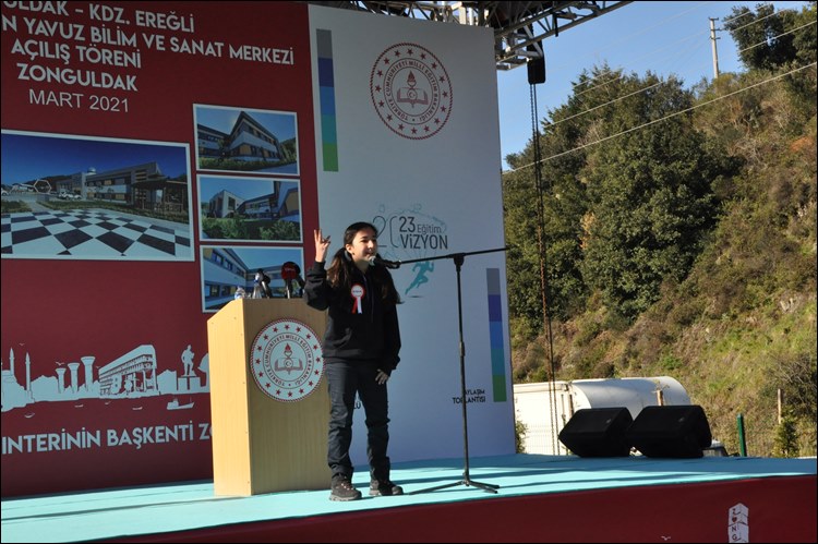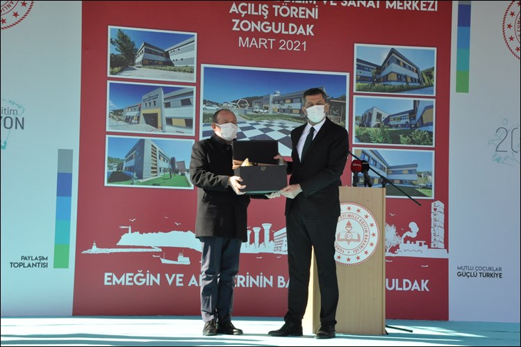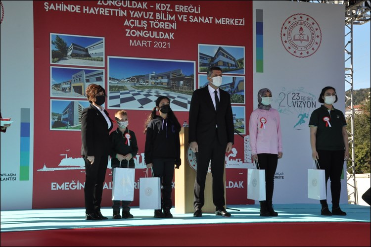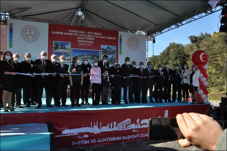12 Mart 2021 Cuma günü Bilim sanat Merkezinin bahçesinde düzenlenen törene; Milli Eğitim Bakanı Ziya Selçuk, Ak Parti Milletvekilleri Polat Türkmen, Hamdi Uçar, Ahmet Çolakoğlu, Zonguldak Valisi Mustafa Tutulmaz, Bakan Yardımcısı Prof. Dr. Mahmut Özer, Kdz. Ereğli Kaymakamı İsmail Çorumluoğlu, Belediye Başkanı Halil Posbıyık, TSO Başkanı Arslan Keleş, DTO Başkanı İrfan Erdem, Erdemir Genel Müdürü Salih Cem Oral, Tat Metal Yönetim Kurulu Üyeleri Akın Tatoğlu ile Hayrettin Yavuz (Aynı zamanda BİLSEM’i Ereğli’ye kazandıran hayırsever bağışçı), Önceki dönem Zonguldak milletvekillerinden Fazlı Erdoğan, siyasiler, STK temsilcileri ile eğitim camiasından yönetici ve öğretmenler katıldı. BİLSEM’İn Ödüllü öğretmeni Selma Yalmancı Yücel’de Bakan Selçuk’u karşılayanlar arasında yer aldı.