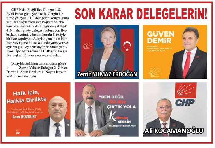 İşte hafta sonunda CHP kdz. Ereğli ilçe başkanlığı için yarışacak adaylar: