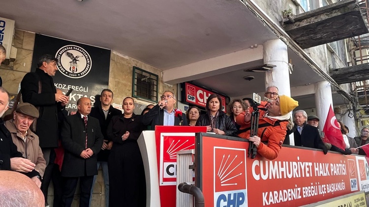 Cumhuriyet Halk Partisi(CHP) Kdz. Ereğli İlçe Başkanı Ali Kocamanoğlu, ilçe yönetim kurulu üyeleri ile birlikte parti binası önünde toplanan kalabalığa hitaben yaptığı konuşmada, İBB Belediye Başkanı Ekrem İmamoğlu’nun gözaltına alınmasına ilişkin tepki gösterdi.