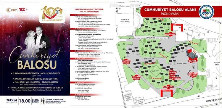 28 Ekim Cumartesi günü Amfi Tiyatroda çocuklar için başlayacak etkinlikler, akşamında İnönü Parkında Cumhuriyet Balosu ile unutulmaz hale gelecek.