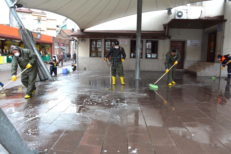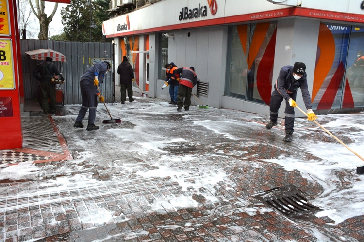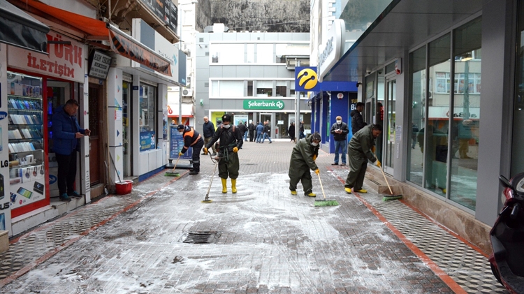 Kdz. Ereğli Belediyesi ekiplerinin cadde ve sokakları ilaçlı suyla yıkadığı bildirildi.