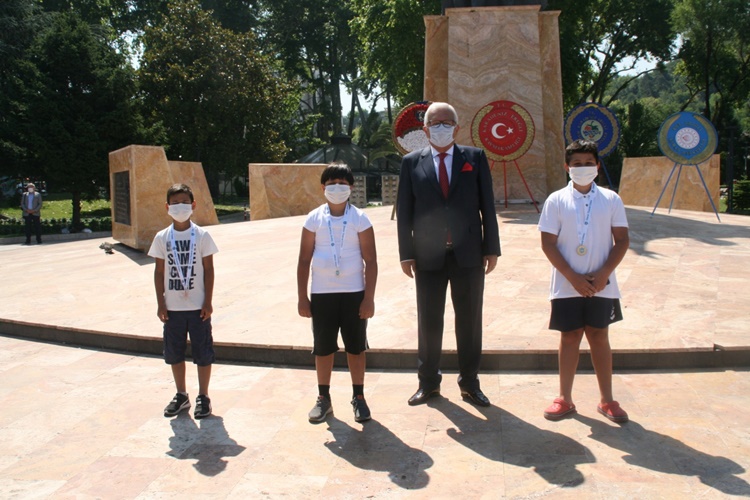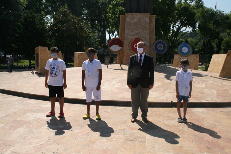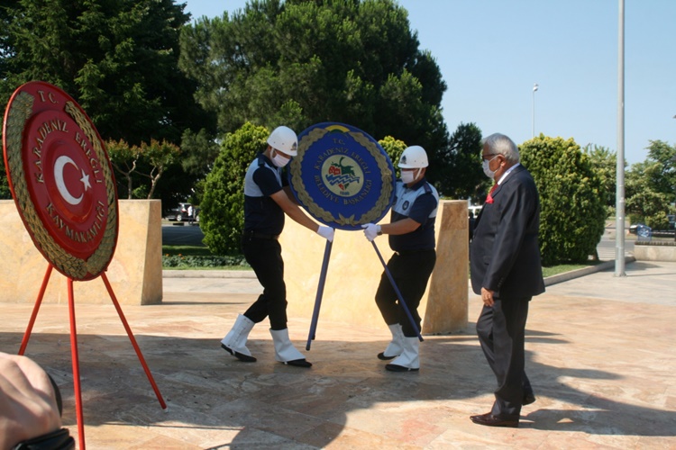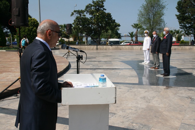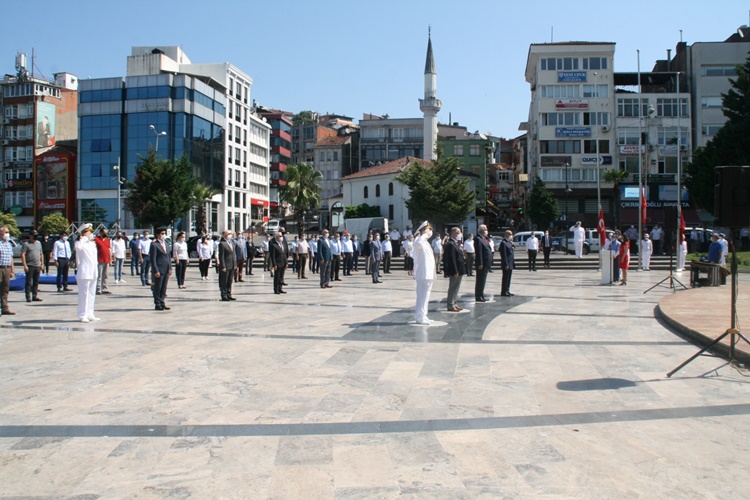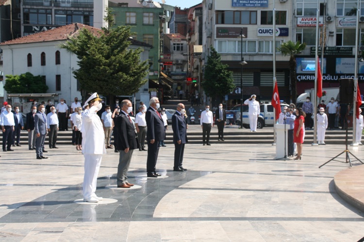 Atatürk Anıtı önünde düzenlenen törende, Karadeniz Ereğli Kaymakamı İsmail Çorumluoğlu, Karadeniz Bölge ve Garnizon Komutanı Tuğamiral Hüseyin Sami Uyar, Ereğli Belediye Başkanı Halil Posbıyık ve Liman Başkanı Nevzat Direk anıta çelenk sundu.