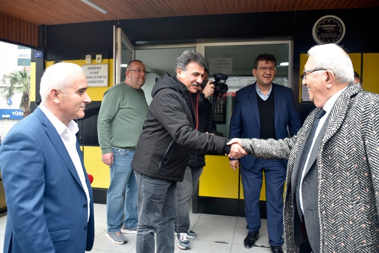 Başkan Posbıyık ve belediye meclis üyeleri daha sonra Murat Taksi Durağı ve Çilek Halk Otobüsü Kooperatifi’ni ziyaret etti.