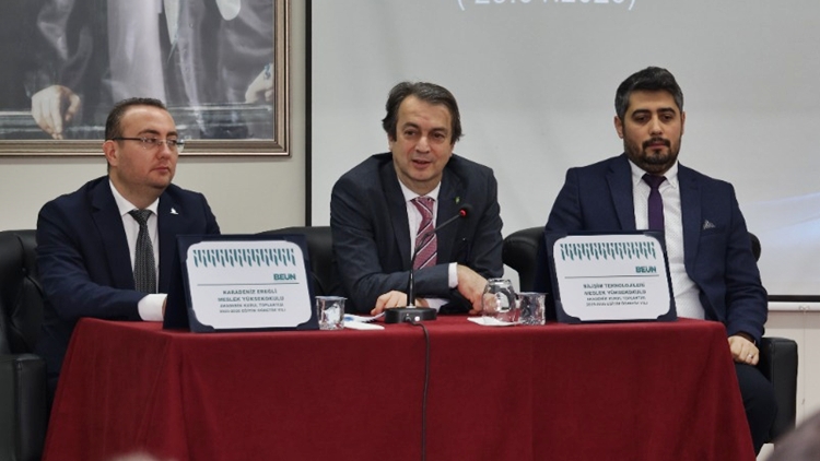 Yapılan sunumların ardından konuşan Rektör Yardımcısı Prof. Dr. Şenol Hakan Kutoğlu, 2024–2025 Akademik Yılı’na ilişkin kapsamlı bir değerlendirmede bulundu. Konuşmasında, 2025–2026 Akademik Yılı Bahar Dönemi’nin Zonguldak Bülent Ecevit Üniversitesi ailesi için hayırlı olmasını temenni eden Prof. Dr. Kutoğlu, yeni dönemin başarılarla dolu geçmesini diledi. Meslek yüksekokullarının yalnızca akademik başarılarıyla değil; aynı zamanda kamu kurum ve kuruluşları ile ilgili sektörlerle yürüttükleri bilimsel projeler, akademik iş birlikleri ve toplumsal katkı odaklı faaliyetlerle de öne çıktığını vurgulayan Prof. Dr. Kutoğlu, meslek yüksekokullarının üniversite bünyesinde hem teorik hem de uygulamalı eğitim açısından son derece önemli bir konuma sahip olduğunu ifade etti.