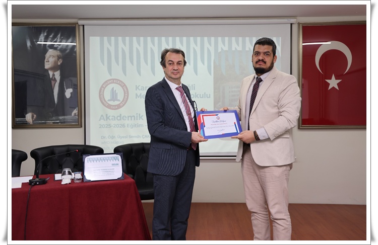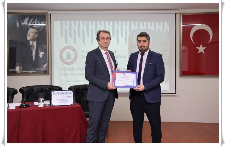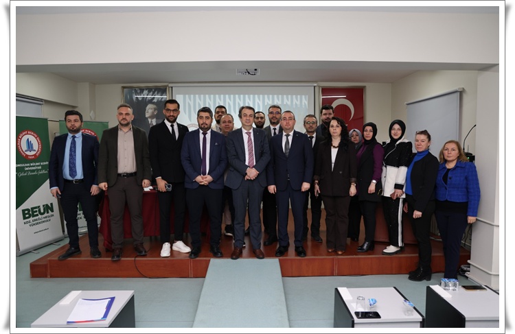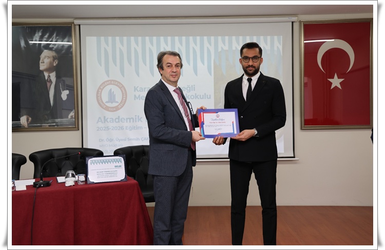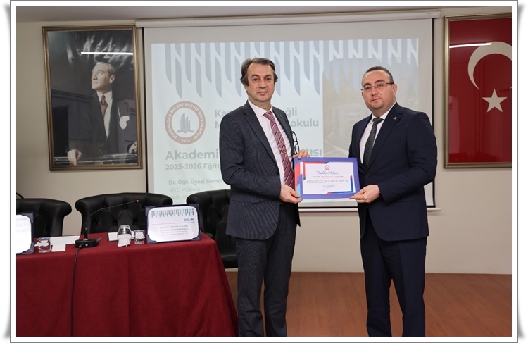 Karadeniz Ereğli Meslek Yüksekokulu ile Bilişim Teknolojileri Meslek Yüksekokulu 2025–2026 Akademik Yılı Akademik Kurul Toplantısı, BEUN Rektör Yardımcısı Prof. Dr. Şenol Hakan Kutoğlu’nun ulusal ve uluslararası indekslerde yayımlanan bilimsel çalışmalarıyla öne çıkan akademisyenlere teşekkür belgelerini takdim etmesi ve hatıra fotoğrafı çekimiyle sona erdi.