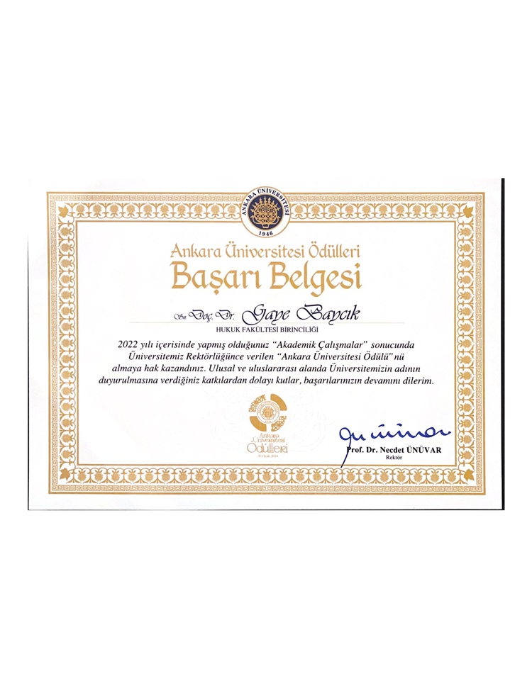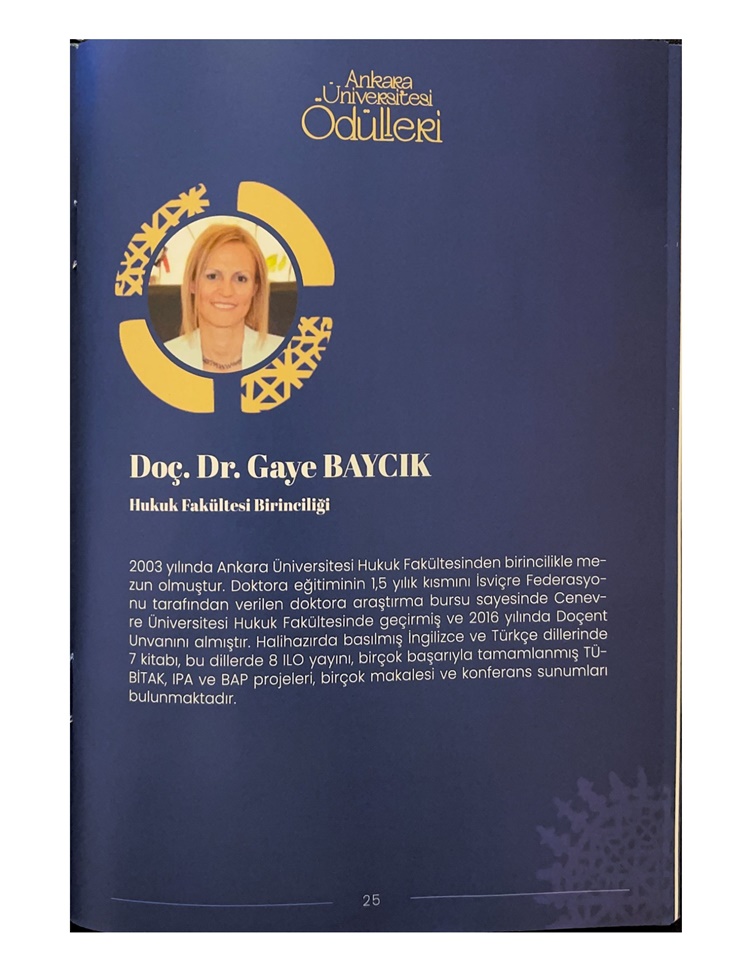 Konuşmaların ve gösterinin ardından gerçekleştirilen ödül töreninde, Önceki Dönem Zonguldak Milletvekillerinden Tahsin Boray Baycık&Aynur Baycık çiftinin Akademisyen Kızı Doç. Dr. Gaye Baycık, Hukuk Fakültesi Birinciliği ödülü almaya hak kazandı. Kdz. Ereğli doğumlu Akademisyen Doç Dr. Gaye Baycık ve diğer başarı sahipleri ödülünü Ankara Üniversitesi Rektörü Prof. Dr. Necdet Ünüvar’ın elinden aldı.