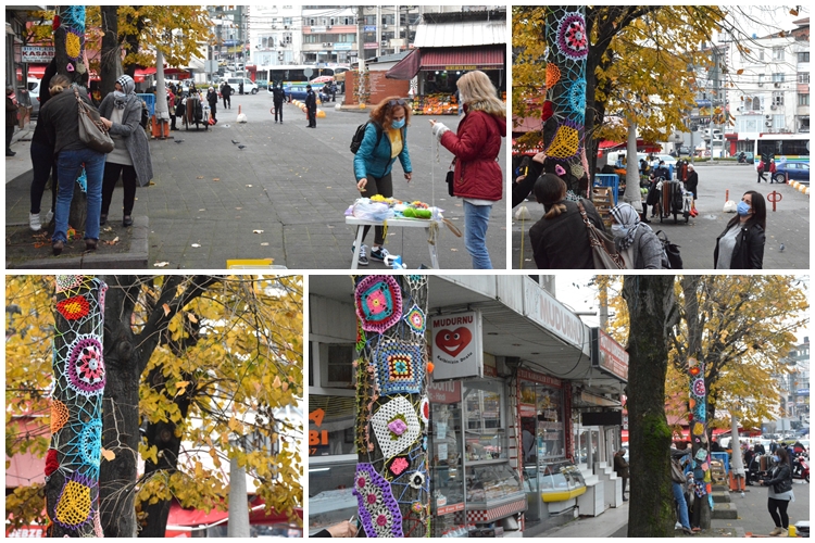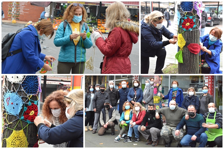 Belediye Basın Bürosundan verilen bilgiye göre ; Tek tek ellerinde ördükleri rengarenk motifleri bir araya getirerek ağaçları süslediler. İlk olarak şehir merkezindeki pazar yerinin girişindeki ıhlamur ağaçları seçildi. Üç ağacın çevresi motiflerle bezenirken, pazar yerindeki kasapların önünde adeta bir bayram coşkusu yaşandı. Esnaf da çalışmalara ortak oldu. Kimi ipleri hazırladı, kimi asılmasına yardım etti. Herkesin maskesi vardı, mesafeye dikkat edildi.