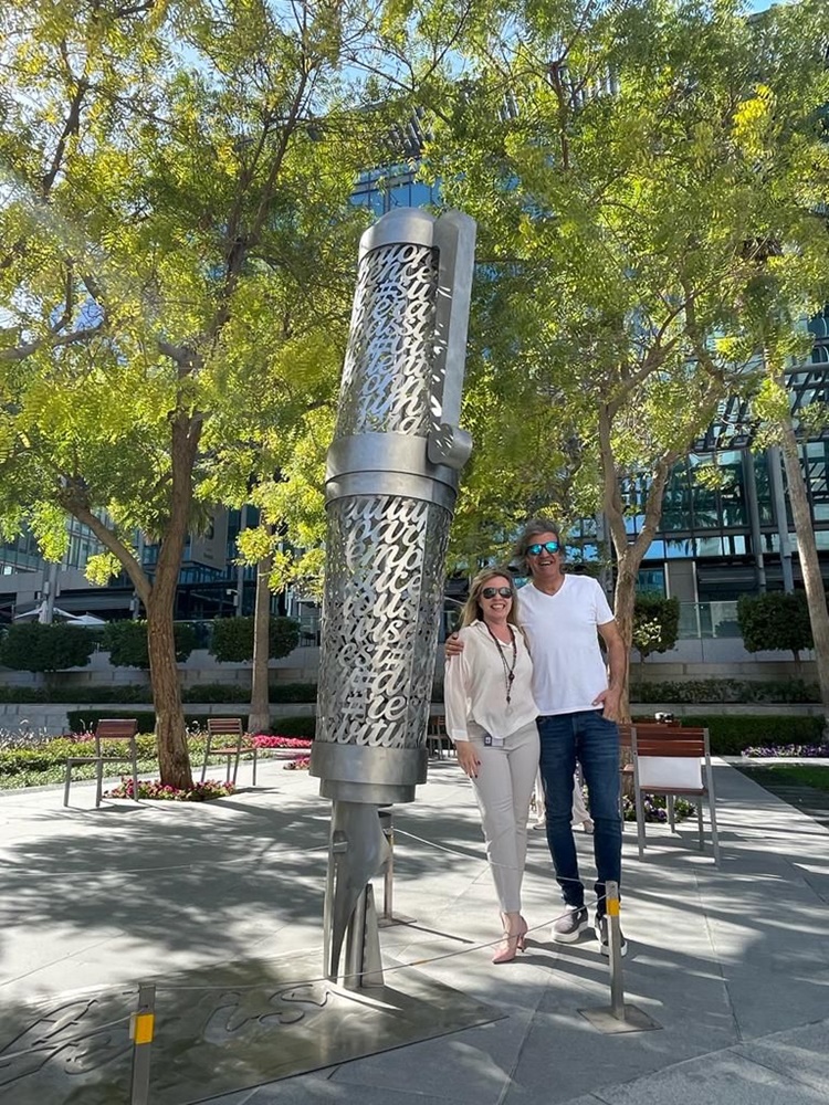 “Son 8 aydır bu projeyi hayata geçirmek için DIFC deki galerilerle ve Dubai’ deki bazı önemli galerilerle işbirliğine giriştik. Daha önceki yıllarda limitli sayıda yerleştirdiğimiz heykellerin sayısını bu sene 65 adete çıkardık. Expo’nun Dubai de yarattığı canlılıktan ve bu yil BAE’nin 50 yıl kutlamalarından da esinlenerek sergimizin hazırlıklarına başladık. Lokal ve enternasyonal sanatçıların da katılımıyla BAE’nin dunu, bugünü ve yarınını  anlatmaya çalışan bir sergi yaptık. ‘Farklı seslerin biraradalığı, BAE’nin 50.yılına saygı durusu’ adi altında sergimizi gerçekleştirdik.”