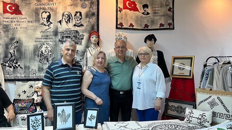 Sembolü yöresel Elpek Bezi’ne taş baskı olarak işleyen kurs öğretmeni Emine Altuntaş, eserinin etiketine ise şu bilgileri eklemiş: