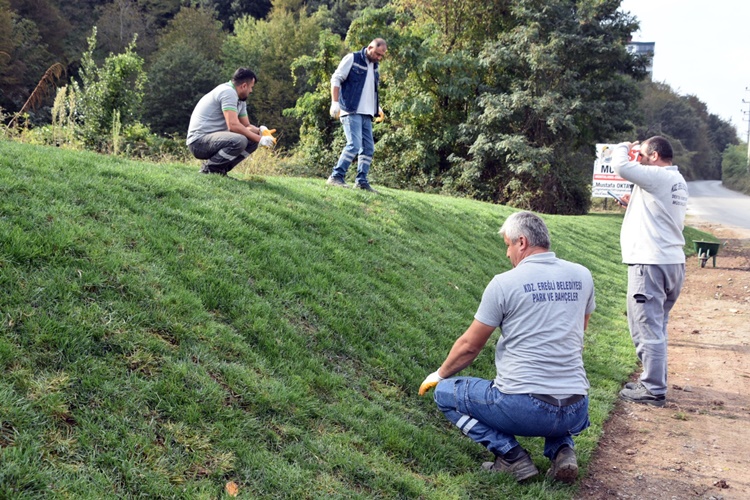 “Ereğli’nin şuandaki çöpleri İl Özel İdare’nin yapmış olduğu alana tüm belediyeler tarafından dökülüyor. Çöpler eskiden buraya döküldüğü için çok kirli bir görüntü vardı. Kirli görüntüyü ortadan kaldırmak için arkadaşlarımız proje hazırladılar. Özellikle kahvaltı bölgesi olarak bilinen Balı mahallesine giderken insanlar görüntüden hiç hoşnut değildiler. Arkadaşlarımız el birliğiyle peyzaj çalışmasına başladı. Çok iyi tepkiler alıyoruz. Buradaki çimlendirme olayını ileri kısmında ağaçlar dikerek bu eski çöplük caddesini pırıl pırıl bir cadde olacak. Temizlik İşleri Müdürümüz Koray beyin öncülüğünde ekiplerimiz hızlı bir şekilde çalışmalarını sürdürüyor.”