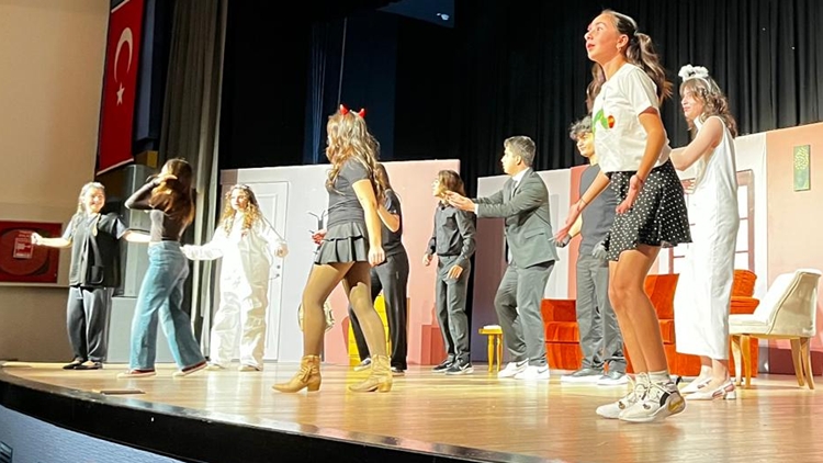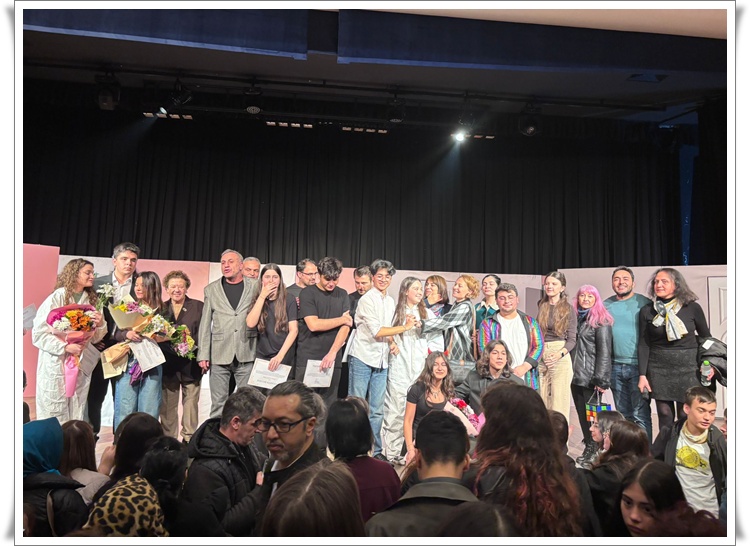 İki perdelik oyunda öğrencilerin sergilediği yüksek performans salonu dolduran izleyiciler uzun süre alkışlarla karşılık verdi.