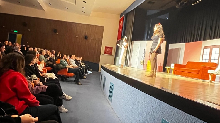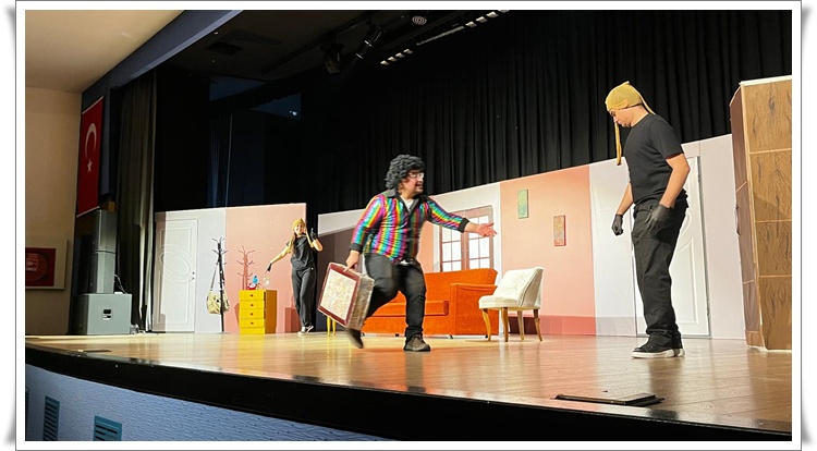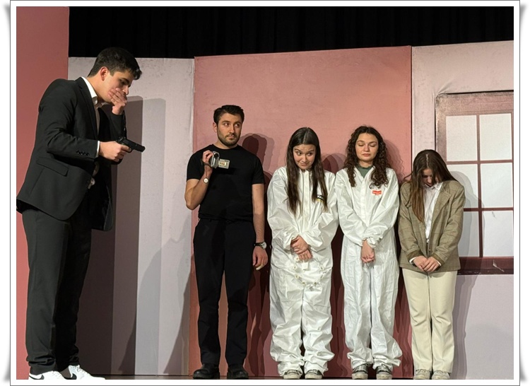 Yunus Emre Gümüş’ün kaleme aldığı, Engin Ay’ın yönetmenliğini üstlendiği, mesajlarla dolu ve ilişkileri konu alan oyun; akıcı kurgusu, güçlü mizah dili ve karakter çözümlemeleriyle dikkat çekti. Öğrencilerin sahne üzerindeki duruşları, replik hakimiyetleri, doğallıkları ve ekip koordinasyonlarıyla adeta profesyonel bir topluluğu aratmadı. Dekor kullanımı, kostüm tasarımı ve sahne geçişlerindeki disiplinli yapı ise hazırlık sürecinin ne kadar titizlikle yürütüldüğünü ortaya koydu.