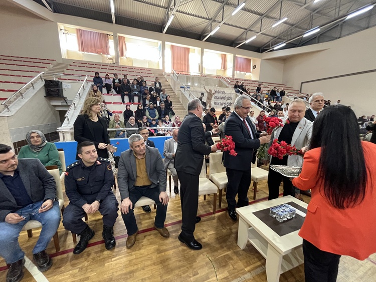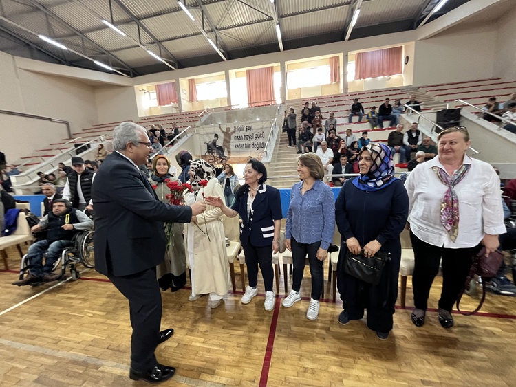 Konuşmaların ardından doğuştan itibaren tekerlekli sandalyede yaşamını sürdüren Barış ve Büşra Korkut’ın annesi Şengül Korkut’un Fiziksel Engelliler Derneği tarafından yılın annesi seçildiği açıklanarak sahneye alkışlar eşliğinde davet edildi. Kaymakam Yapıcı ve Milletvekili Bozkurt, yılın annesine çiçek ve hediye takdim ederek kutladılar. Protokol üyeleri, salonda bulunan tüm kadınlara karanfil takdim ederek anneler günü kutlaması yaptı.