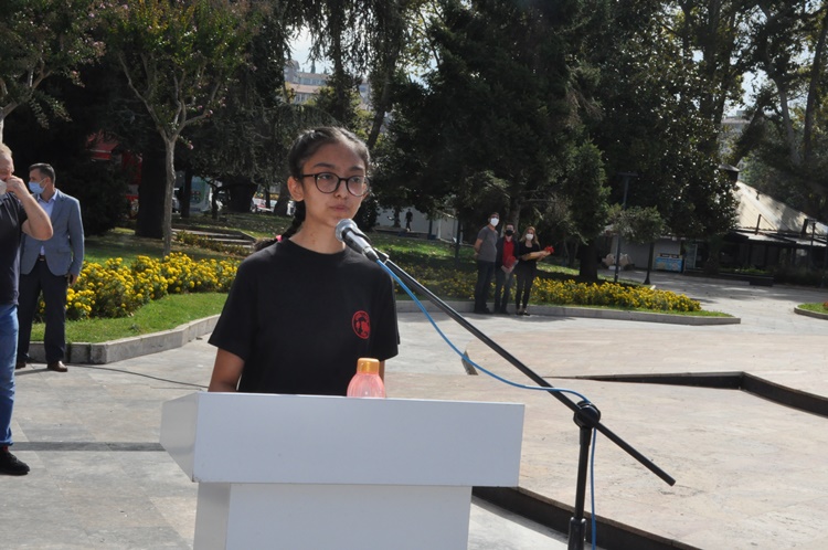 Şahin’in konuşmasının ardından Ereğli Anadolu Lisesi Öğrencisi İrem Diri Yaşasın Kahraman Gazi şiirini okudu.
