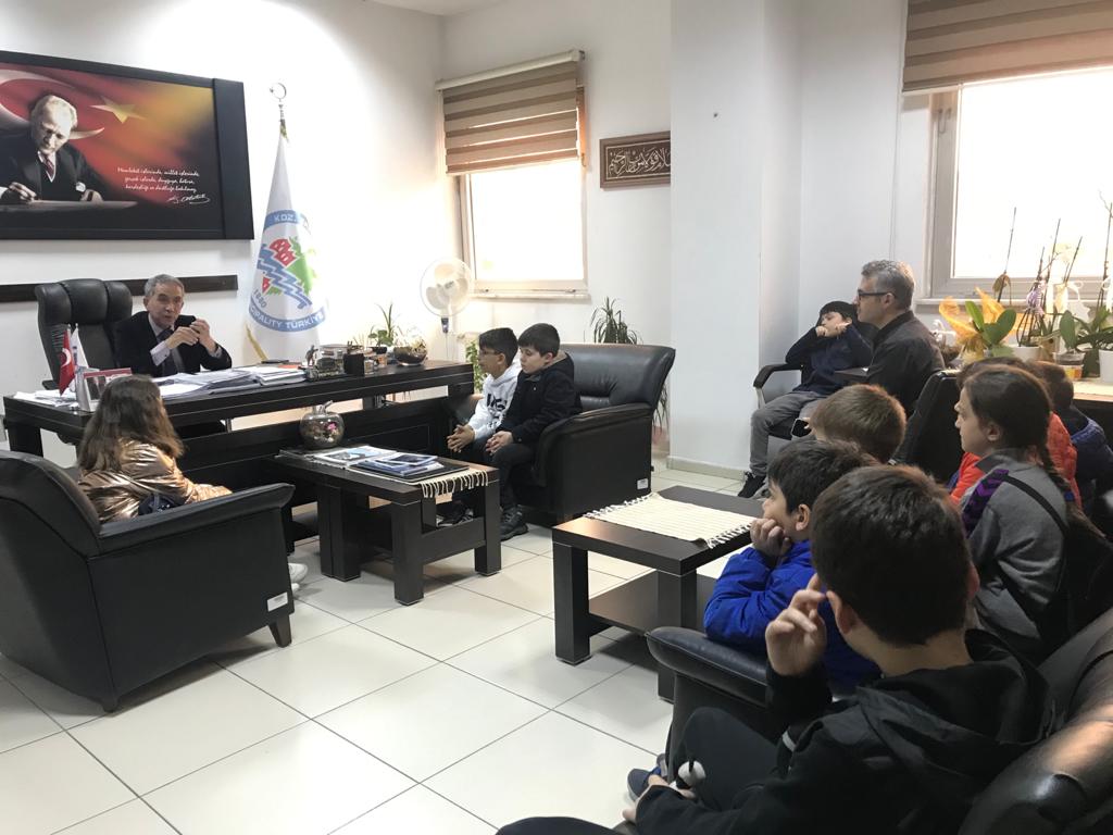 Bilim Kahramanları Derneği’nin düzenlemiş olduğu ‘Minik Bilim Kahramanları Buluşuyor’ adlı robotik yarışmasında Kdz. Ereğli’yi temsil edecek olan Ereğli İlkokulu, Kepez İlkokulu ve İzmirlioğlu İlkokulu öğrencileri Belediye Başkan Yardımcısı Mimar Haluk Okur’u makamında ziyaret ettiler.