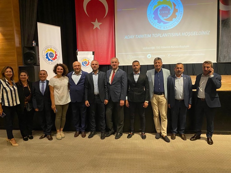Kdz. Ereğli Önceki Dönem Belediye Başkanlarından Murat Sesli, Kızılay Şube Başkanı Kürşad Yağız, Ak parti Eski İLçe Başkanı Fatih Çakır ve TSO üyelerinin katıldığı aday tanıtım toplantısında faaliyetlerin özetlendiği sunum perdeden yansıtıldı. Programda konuşan Kdz. Ereğli TSO Yönetim Kurulu Başkanı Arslan Keleş, “Değişime ortak olalım” sloganı ile göreve geldiğini, yeni dönemde de “Gelişime ortak olalım” sloganı ile Ereğli’nin gelişmesi için yeni ekip arkadaşları ile birlikte çalışacaklarını ifade etti.