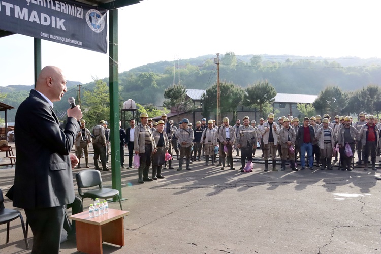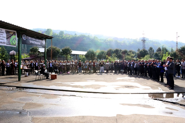 GMİS Mali Sekreteri Yalçın Yiğit tören öncesi yaptığı konuşmada, 2010 yılında hazırlık işini yaparken meydana gelen kazada taşeron firmada çalışan 30 maden işçisini kaybetmenin üzüntüsünü hala yaşadıklarını söyledi. İş sağlığı ve güvenliği konusunun çok önemli olduğunu ifade eden Yiğit, “Bizler, diğer müesseselerde yaşadığımız acı tecrübelerle iş sağlığı ve güvenliğinin ne kadar önemli olduğunu gördük. Hepimiz zor şartlar altında üretim yaparak ekonomiye katkı sağlamaya çalışıyoruz. Sizlerin evlerine sağ salim gitmeniz için, tırnağınıza bile taş değmemesi için mücadele ediyoruz. Ben 30 maden işçimiz ve tüm maden şehitlerimizi rahmetle anıyorum, ailelerine başsağlığı diliyorum.” dedi.