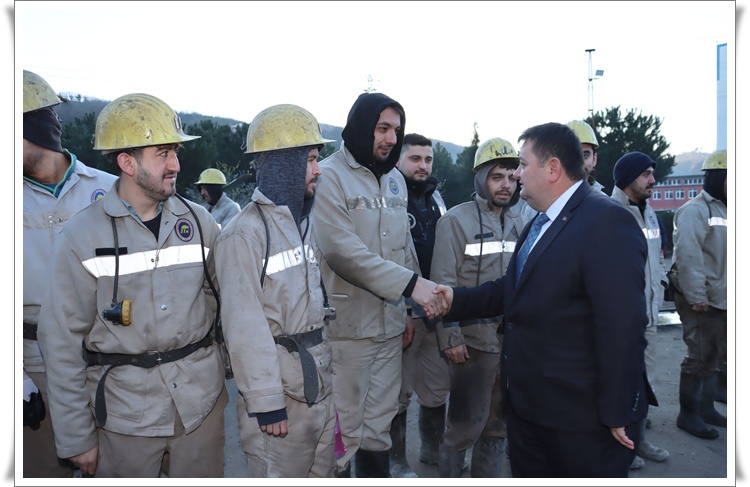 “Ramazan ayında sizlerle birlikte olmak güzel ama kurum 13 Ocak’tan beri önemli bir sınavdan geçiyor. Bu zor dönemlerde bizim en önce yapacağımız, birbirimize, işimize ve kuruma sahip çıkmaktır. Bunu bütün iş yerlerinde anlattım. Madencinin özelliği her daim, her şart altında beraber olma özelliğidir.
