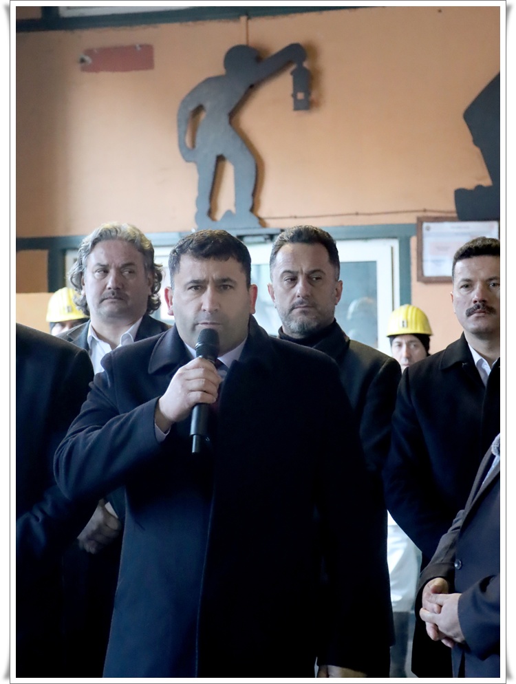 GMİS Genel Başkanı Hakan Yeşil maden işçilerine hitaben yaptığı konuşmada, “Bizler GMİS ve sendika yönetimi olarak dimdik ayaktayız. Sürecin nasıl işlediğini sizler biliyorsunuz. Geldiğimiz noktada bir kalemle, bir imza ile neler yapılabildiğini hep beraber gördük. Hepimiz ciddi bir sınavdan geçiyoruz. Böyle bir oluşumun olduğu dönemde sizlerden ricam sınıf bilinci. Birbirimize, kurumumuza sahip çıkmamız lazım. Bizler buradayız. Sizlerden aldığımız güç ile buradayız. Beraber mücadele ettik. Bundan sonrada yine beraber mücadele edeceğiz. Bundan kimsenin şüphesi olmasın” dedi.