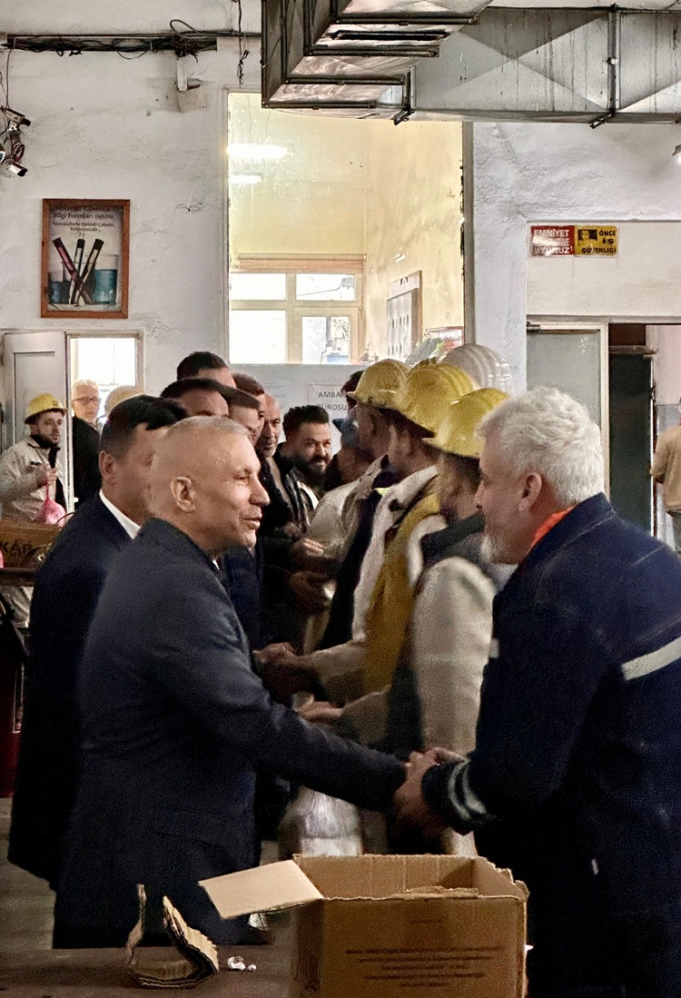 Genel Maden İşçileri Sendikası (GMİS) Yönetim Kurulu, Ramazan Bayramı sonrası işbaşı yapan madencileri ziyaret ederek geçmiş bayramlarını tebrik edip kazasız belasız çalışmalar diledi.