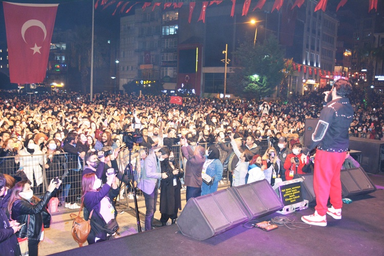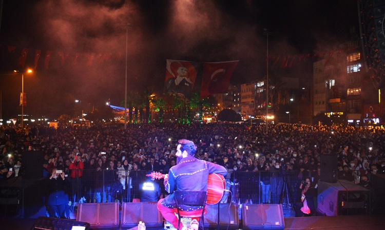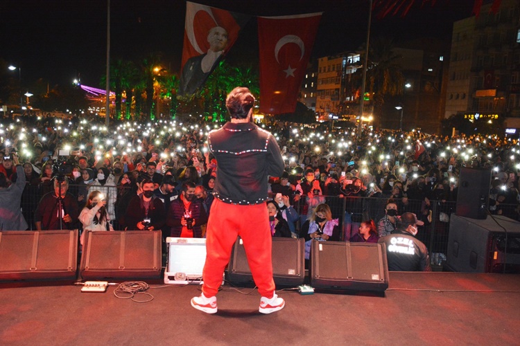Kentte akşam saatlerinde yapılan Cumhuriyet yürüyüşünün ardından sahne alan sanatçı, söylediği birbirinden güzel şarkılarıyla Cumhuriyet coşkusuna ortak oldu. Binlerce vatandaşın şarkılarına eşlik ettiği Türkmen, gördüğü ilgi karşısında oldukça duygulandı.