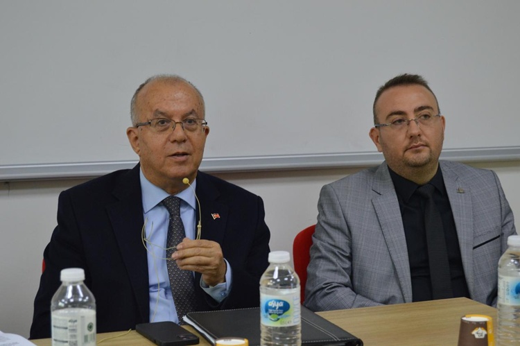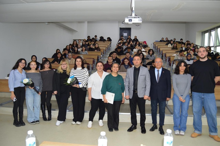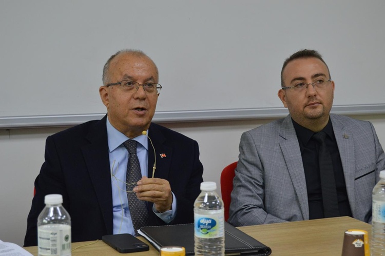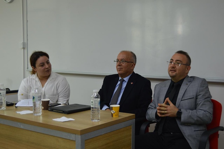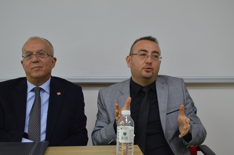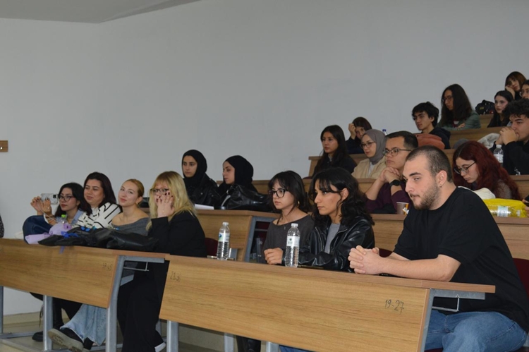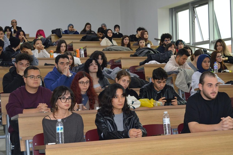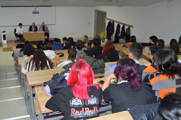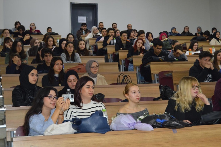 24 Kasım Pazartesi günü Prof. Dr. Bekir Topaloğlu Amfisi’nde Gazeteci Sabriye Aşır’ın moderatörlüğünde düzenlenen söyleşiyi, akademisyenler ve öğrenciler takip etti.