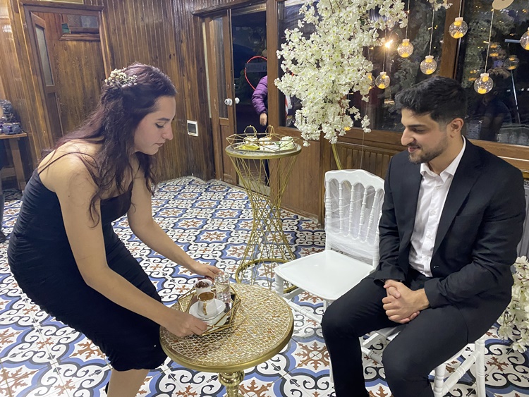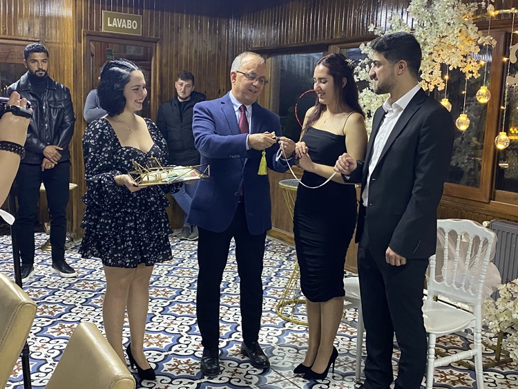 19 Kasım Cumartesi günü akşam saatlerinde Ereğli Midilli Park’ta aile yakınlarının katılımı ile gerçekleştirilen törene çiçekler ve hediyelerle gelen erkek tarafını kız tarafı kapıda karşıladı. Gençlerin aile büyükleri Nihan’ın Anneannesi Tomris Karakuş, Amcası Güven Gönüllü ve Ömer Faruk’un Akrabası Karasu Sosyal Hizmetler Merkezi Müdürü Metin Yıldırım geleneksel adetleri gençlerin kahve ikramı eşliğinde yerine getirdiler. Bu sırada Nihan’ın halası Beyhan Köksal ise misafirlerle yakından ilgilenerek ev sahipliği yaptı.