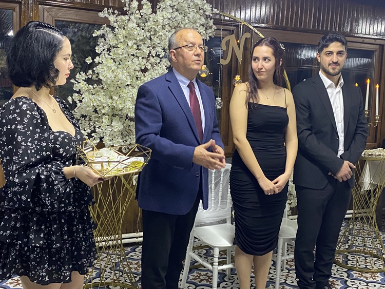 Mutluluk rüzgarları estiren nişan töreni, ikramların sunulması ve sohbetle devam etti.