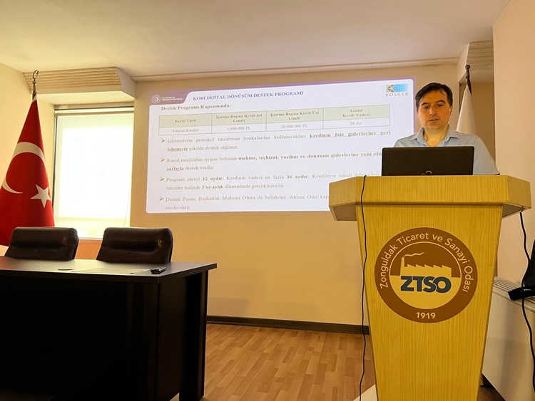 26 Haziran 2024 tarihinde Zonguldak Ticaret ve Sanayi Odası’nın 3. Katında KOSGEB uzmanı Soner Kaynar’ın sunumlarıyla gerçekleştirilen toplantıda, Destek programının İş Kurma Desteği ve İş Geliştirme Desteği olmak üzere iki ana başlıktan oluşan programın detayları anlatıldı.