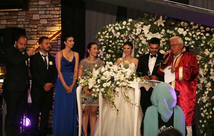 Yaklaşık 750 davetlinin yer aldığı salonda çiftin nikahını, Ereğli belediye Başkanı Halil Posbıyık kıydı.