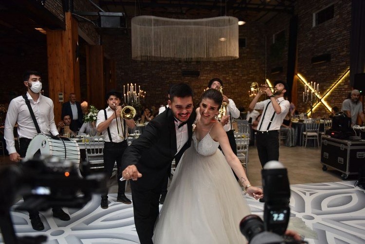 Gülcan-Zeki Işıldak’ın kızları Gizem ile Selma-Seyfettin Karaoğuz’un oğlu Baran, İstanbul’dan gelen özel bando ekibinin çaldığı müzikler eşliğinde; özenle hazırlanmış Tim’s Fabrika Salonuna girdiler.