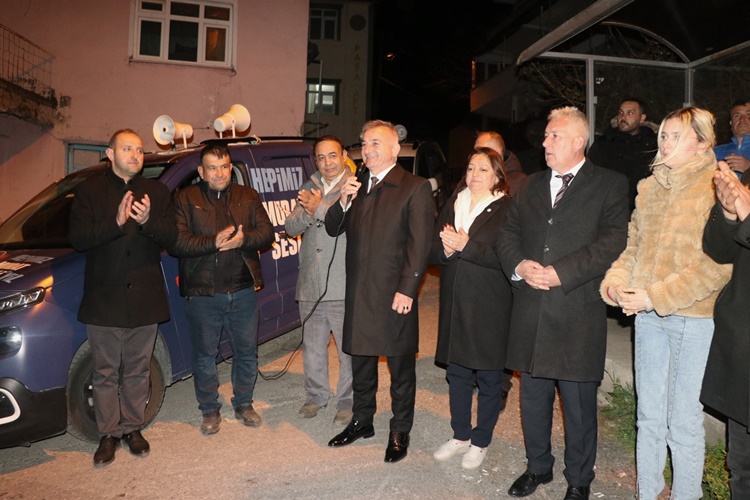 Göktepe Mahallesi’nin 14 yıldır mahalle olduğunu ama 14 yıldır hizmetten mahrum kaldığını söyleyen Kdz. Ereğli Belediyesi Önceki Dönem Başkanlarından Murat Sesli konuşmasında şu ifadelere yer verdi; “2007- 2009 yılları arasında belediye başkanlığı yaptım o zaman siz mahalle olmamıştınız. Tabii biliyoruz bazı sorunlarınız var, bizler göreve geldiğimiz zaman bu sorunlarınız giderilecek. Gelirken baktım yol sorununuz var, mezarlıklar, kanalizasyon ve alt yapı ile ilgili sorunlarınız var. Bunlar çözülebilir sorunlar, bugüne kadar çözmeyenlerin ayıbı. Biz görev aldığımızda bunların hepsini çözeceğiz. Bizim belediye başkanlığı dönemimizde başarılı çalışmalar yaptığımızı inanıyorum. O dönemde 120 bin ton asfalt dökmüştük, şimdi daha fazlasını yapacağız ve asfaltsız mahallemiz kalmayacak. Ayrıca benim dönemimde öğrencilerimize burs veriyorduk, bizden sonra burs olayı kalktı. Şimdi ekip arkadaşlarımızla göreve geldiğimizde yine şehir dışına giden öğrencilerimize her ay düzenli olarak 5 bin TL burs vereceğiz. Ayrıca 3 bin 500 kadınımızla Çanakkale’ye çıkartma yapmıştık. Göreve geldiğimizde kadınlarımız hazır olun Mayıs Ayı’nda ilk kültür gezimizi gidiyoruz. Yine Türkiye’nin en büyük kültür gezisini yapacağız.Sahilimizi güzelleştireceğiz, daha modern ve halkımızın isteğine uygun bir sahil yapacağız.