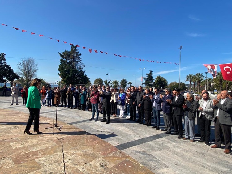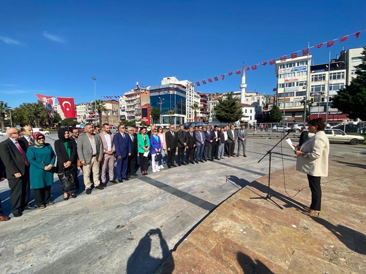 Parti’nin ilçe Kadın Kolları Başkanı Nuray Çelik Özkara’nın sunumunu yaptığı törende İlçe Başkanı Balbaloğlu’nun Atatürk Anıtına çelenk sunumunun ardından saygı duruşunda bulunuldu, İstiklal Marşı okundu.