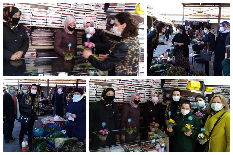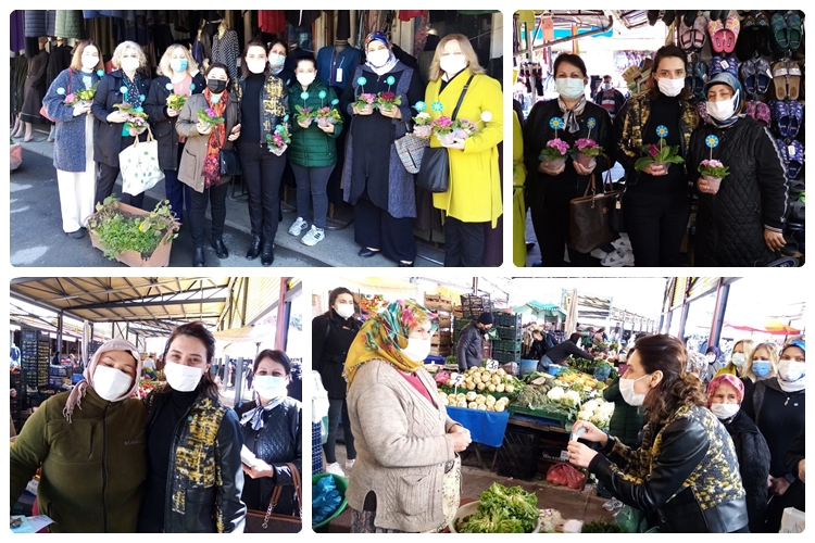İyi Parti Kdz. Ereğli İlçe Başkanı Op. Dr. Evrim Balbaloğlu ile Zonguldak İl Disiplin kurulu Başkanı Asım Tazegül, 8 Mart Dünya Kadınlar Günü etkinliğinde pazaryeri ve çarşı esnafı ziyaretlerinde bulunarak kadınlara çiçek takdim etti.