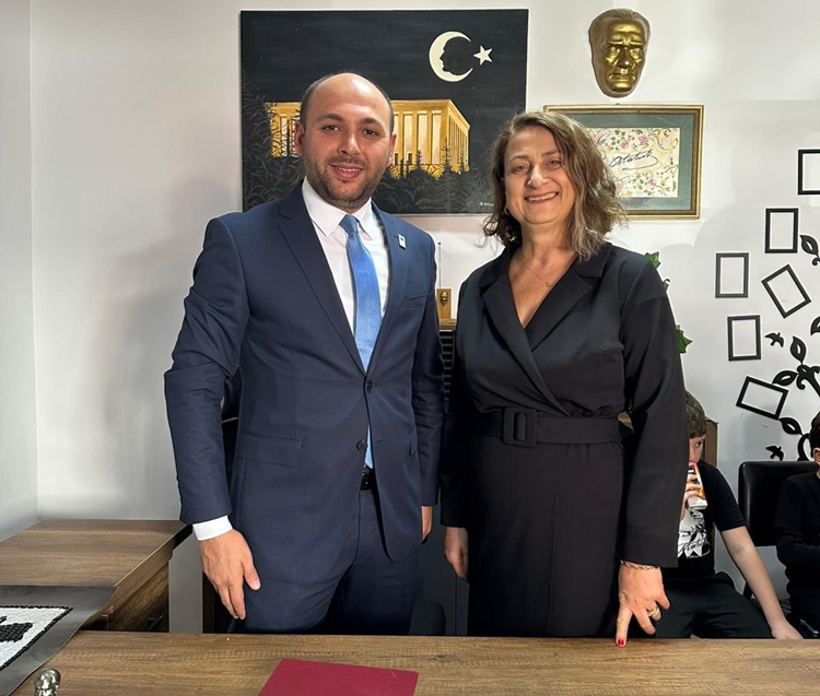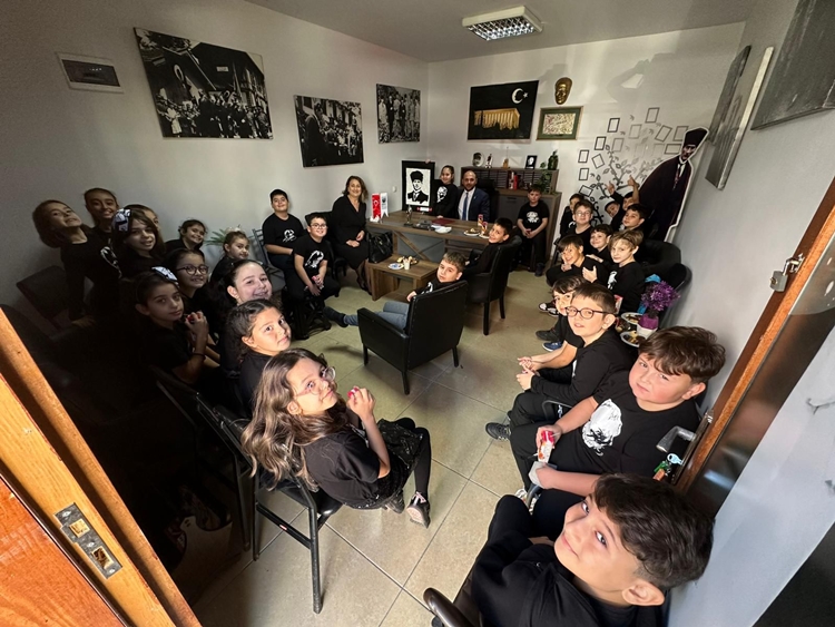 10 Kasım Atatürk’ü Anma Günü ve Atatürk Haftası etkinlikleri kapsamında gerçekleşen ziyarette okul öğrencilerinden Nehir Likoğlu, hazırladığı Atatürk portresini ADD adına Şube Başkanı Uğur Likoğlu’na hediye etti .