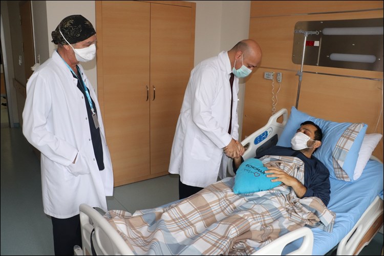 Gerçekleştirilen ameliyat ile ilgili olarak bilgi veren Doçent Doktor Ali Kemal Gür “Nefes darlığı ve göğüs ağrısı şikâyeti ile geldi. Hastaya yaptığımız eko sonucunda kalpten çıkan güçlü ve sivri büyük bir damarımız var, onda yırtık tespit ettik. Bunu tespit ettiğimiz an hastayı direkt olarak ameliyata almamız gerekiyor. Çünkü; bu hastalığının ölüm riski her saat başı %4 olarak artıyor yüzden hastamızı görür görmez biz hazırlıklarını yaptık ve en kısa zamanda ameliyata aldık hastayı. Kalbi açtığımızda göğüs kafesini açtığımızda çok ciddi bir genişleme ile karşılaştık. Açıkçası 15 senelik meslek hayatımda ilk defa gördüğüm bir görüntüydü, yaklaşık 13-14 santimlik bir genişleme söz konusuydu. Normalde bu damar 2-3 santimdir fakat harun beyin ki yaklaşık 13-14 santim civarında genişlemesi olmuştur. O yüzden biz hastayı acilen ameliyat aldık ve yapay bir damar takarak hastanın hayatını devam ettirmeye çalıştık. Çok şükür bir sıkıntımız olmadı. Ameliyatımız çok uzun sürecek gibiydi fakat çok şükür kısa sürdü. 3 saatlik bir zaman zarfında hastayı yoğun bakıma aldık. Sıkıntı olmayacak bundan sonrası için normal hayatına dönecek 1-2 aylık iyileşme sürecinin ardından normal hayatına dönebilecek. Hastamızı zaten bugün yarın taburcu etmeyi düşünüyoruz herhangi bir sıkıntımız yok. Hastamızı ameliyata alırken yakınlarını bilgilendirdik. Açıkçası bu ameliyatın riski %40 ile %50 civarında bir ölüm riski vardır. Ameliyat sonrası böbrek yetmezliği karaciğer yetmezliği hariç sadece ölüm riski %50 civarındadır. O yüzden çok şükür bir sıkıntı olamadan atlattık” dedi.