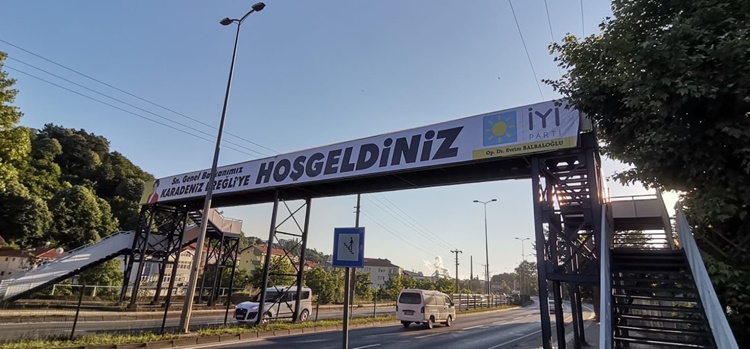 İyi Parti Genel Başkanı Meral Akşener’in Zonguldak’ın Ereğli ilçesi ziyareti öncesinde parti teşkilatı, Anıt Park çevresini, çarşı içini ve üst geçitleri karşılama afişleri ile süsledi.