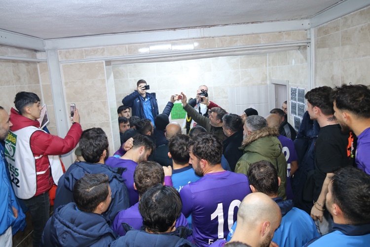 Futbolular maç sonu soyunma odasında Covid tedavisi süren Belediye ve Kulüp Başkanı Halil Posbıyık’ı görüntülü arayarak galibiyeti hediye etti.