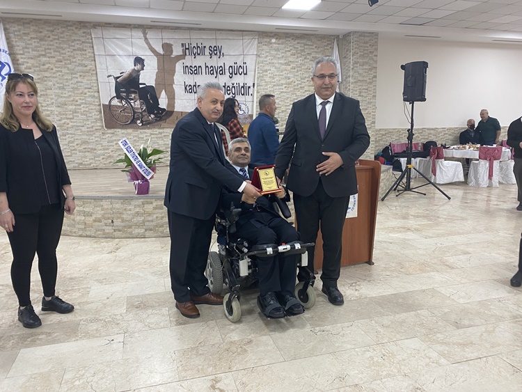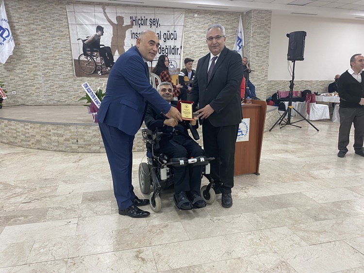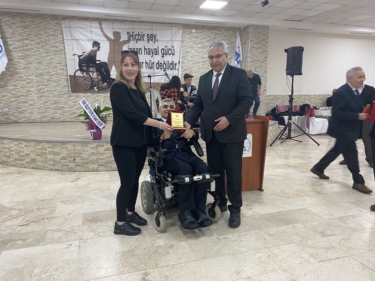 Kaymakam Yapıcı’da Dernek Başkanı İsmail Şentürk’ün başarılı çalışmalar yaptığını gözlemlediğini ifade etti ve “Böyle bir plakate layık gösterildiğim için teşekkür ediyorum. Layıkmıyım bilmiyorum ama bir tek şey var; ben İsmail bey ve ekibini çok seviyorum. İsmail Bey’in telefonundaki whatsapp hattında 1986 kişi kayıtlı. Yani 1986 kişiye dokunuyor. Birçok ilçe, ülke gezdim, bir çok yer gördüm, İsmail Bey kadar engelli kardeşlerimizle ilgilenen, çok akıllıca işler yapan bir başkasını görmedim. Bu vesileyle, hepinizin huzurunda Ona teşekkür ediyorum. Büyük Atatürk’ün kurduğu Türkiye Cumhuriyeti Devletinin, Anayasa’da nitelikleri açıkça belirtilmiştir. Bu niteliklerden birisi de sosyal devlet olmasıdır. Gelişmiş bir sosyal Devlet, engellisine 3 seçenek sunuyor. Gel; ya ben sana bakacağım, ya benim parayla satın aldığım özel sektör bakar, ya da gönüllü kuruluşlar bakar. Gönüllü kuruluşlar sosyal devletten çok önemli yere sahiptir. Biz, Ereğli olarak şanslıyız çünkü, İsmail Şentürk’ümüz var… Kendisine huzurlarınızda tekrar teşekkür ediyorum.” dedi. Yapıcı sözlerinin sonunda Şentürk’ü alnında öperek kutlaması duygulu anlar yaşanmasına neden oldu.