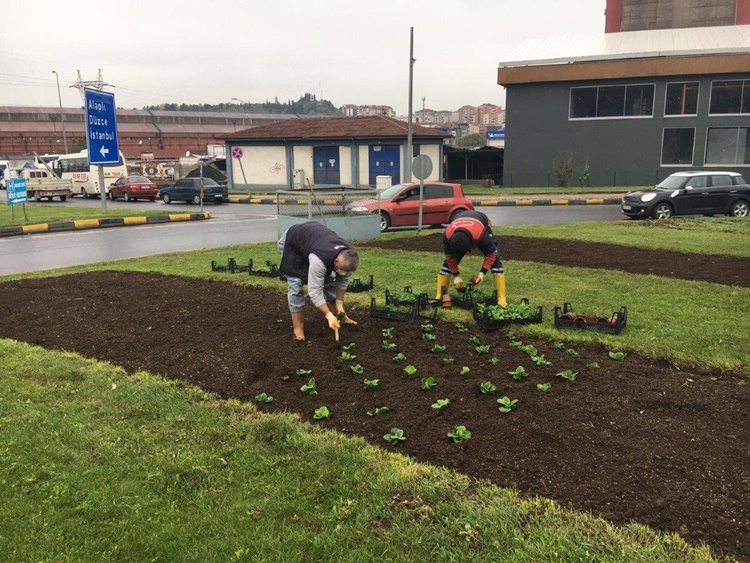 Ekipler, Yeşiltepe cevizler kavşağı, Devrek yol ayrımı kavşağı ve Kışla kavşağında çevre düzenleme ve çiçek dikimi çalışmalarına devam ediyor.