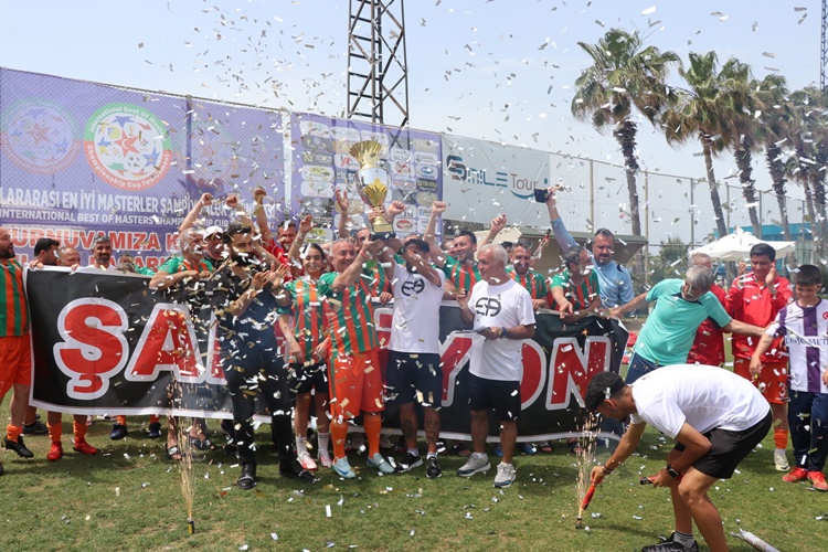 Antalya’da düzenlenen 9. Uluslararası En İyi Masterler Şampiyonası turnuvasında namağlup finale yükselen Turgut Tanyıldız Masterler takımı bugün sabah Diyarbakır Şa-Şe Masterler ile karşılaştı. Diyarbakır Şa-şe Masterler’ın attığı golle uzun süre geride kalan Turgut Tanyıldız Masterler son dakikalarda Talat’ın attığı golle beraberliği yakaladı. Normal süresi 1-1 biten maçta Turgut Tanyıldız Masterler ve Diyarbakır Şa-Şe penaltı atışlarında kozlarını paylaştı. Penaltı atışlarında Turgut Tanyıldız Masterler kaleci Erdal kurtardığı son penaltı ile takımını şampiyonluğa taşıdı. Büyük sevinç yaşayan Turgut Tanyıldız Masterler takımı ve kafilesi sahada kutlama yaptı. Kaptan Murat Sesli’yi omuzlara alan takım arkadaşları “En büyük başkan, bizim başkan” sloganları attı.