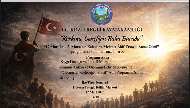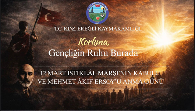 Karadeniz Ereğli’de, İstiklal Marşı’nın kabulünün 105. yıl dönümü ve milli şair Mehmet Akif Ersoy’u anma günü dolayısıyla “Korkma, Gençliğin Ruhu Burada” temalı resmi tören gerçekleştirilecek.