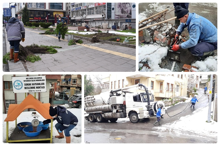 Kdz. Ereğli Belediyesi sokağa çıkma kısıtlamasının bulunduğu hafta sonunda tüm ekipleriyle seferber oldu, kentin her bir noktasında kar temizliği yaptı. Çarşı merkezi yıkandı, kar kütlelerinin kaldırılması çalışmaları devam etti. Zarar gören ağaçlar budanırken, hasar oluşan su hatları tamir edildi.
