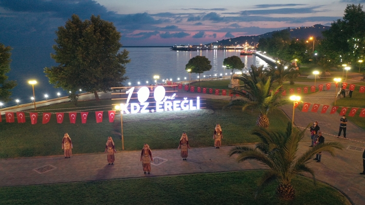 Kdz. Ereğli Belediyesi, düşman işgalinden kurtuluşun 100. Yılında Ereğli’nin semalarını havai fişekle aydınlattı. Belediye Halk Oyunları ekibi Atatürk’ün sevdiği zeybek oyunuyla coşturdu.
